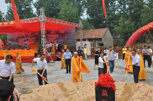 最后,徐州市民宗局副局长黄修建,邳州市政协副主席、市委统战部部长沈莉,江苏省佛教协会副会长、徐州市佛教协会会长、徐州兴化寺方丈果光大和尚,邳州市委统战部副部长、邳州民宗局局长刘斌,邳州市四户镇镇长孔岳杰,邳州市佛教协会会长陈刚辉,环宇石膏集团董事长李允海,徐州市民宗局宗教处邱之森,白马寺党参法师,邳州市四户镇白马寺村党支部书记李肖等,在礼炮声中为白马寺重修工程培土奠基。