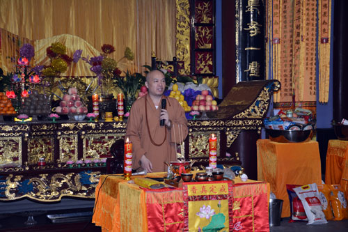 8月28日下午,江苏省佛教协会副会长、徐州市佛教协会会长、徐州兴化寺方丈、淮安慈云寺方丈果光大和尚专程从淮安回来,为四众弟子庄严开示:今年的盂兰盆法会与往日不同,意义非常重大。值中国人民抗日战争暨世界反法西斯战争胜利七十周年纪念之际,我们隆重举办和平祈祷法会,其目的就是祈愿中国人民和世界人民远离战争,远离灾难,幸福安详,永久和平。纪念这一胜利,也就是让世界人民团结起来,制止战争,维护和平。他祝愿四众弟子坚定信仰,树立信心,一心念佛,成就菩提,更好的为实现中华民族的伟大复兴的中国梦作出应有的贡献。