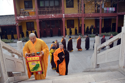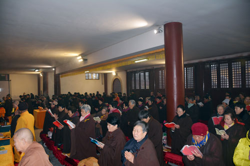 2015年12月20日至12月27日(农历十一月初十至十七),正值大雪、冬至两节相连,徐州兴化禅寺梵音袅袅,钟鼓齐鸣,来自苏鲁豫皖周边地区的400余名四众弟子,以虔诚之心礼拜诵念《梁皇宝忏》,祈祷世界和平,社会和谐,国泰民安。法会期间,兴化禅寺方丈果光大和尚数次向两序大众开示,并先后举办斋天仪式、放焰口、放生等法事活动。