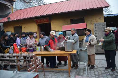 当天上午,徐州市人大、政协以及有关部门领导来到兴化禅寺,与广大市民一起品尝腊八粥,普天同庆,万民同乐,共同感受这一浓郁的中国传统民间节日气氛。