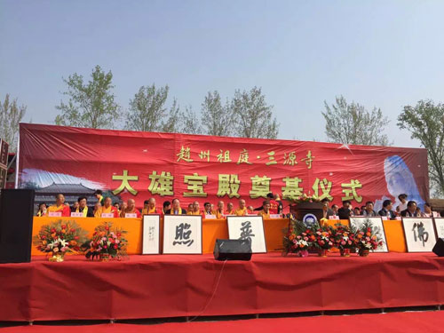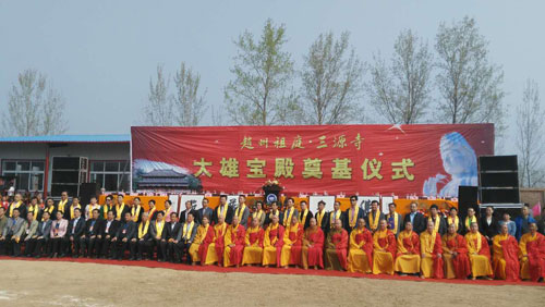 山东菏泽市赵州祖庭三源寺于4月1日举行大雄宝殿奠基庆典仪式。法会由仁昌法师、果光大和尚、妙安大和尚、顿雄大和尚、本悟大和尚、弘庵法师、开应法师等几十位大德法师共同主法。众主法法师共同拈香主法。三源寺大雄宝殿奠基仪式隆重举行,这不但菏泽佛教界的一大盛事,更是佛教界的一大盛事!