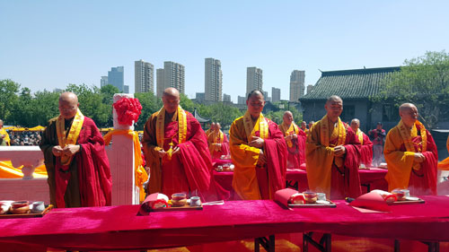 应邀出席诸山长老高僧大德有:中国佛教协会咨议委员会副主席、江苏省佛教协会名誉会长、常州天宁禅寺松纯大和尚,中国佛教协会副会长、江苏省佛教协会会长、镇江市金山江天禅寺心澄大和尚,中国佛教协会副秘书长、江苏省佛教协会副会长兼秘书长、苏州寒山寺方丈秋爽大和尚 ,山东佛教协会会长、山东省淄博市普照寺仁昌大和尚,江苏省佛教协会副会长、扬州市大明寺方丈能修大和尚,江苏省佛教协会副会长、南京市栖霞寺方丈隆相大和尚 ,江苏省佛教协会副会长、南京市鸡鸣寺莲华大和尚,江苏省佛教协会副会长、苏州市戒幢律寺方丈普仁大和尚,江苏省佛教协会副会长、徐州市云龙山兴化寺方丈、淮安慈云寺方丈果光大和尚,江苏省佛教协会副会长、南通市狼山广教寺方丈俊才大和尚,江苏省佛教协会副会长、连云港市海宁寺方丈昌鉴大和尚,江苏省佛教协会副会长、泰州南山寺方丈大初大和尚 ,江苏省佛教协会副会长、无锡市南禅寺能开大和尚,江苏省佛教协会副会长、常州天宁禅寺监院廓尘法师,江苏省佛教协会副会长、南京市毗卢寺传义大和尚,江苏省佛教协会副秘书长、扬州市高旻寺文龙大和尚,江苏省佛教协会副秘书长陈建华先生, 江苏省佛教协会副秘书长、句容市宝华山隆昌寺心平大和尚,江苏省佛教协会副秘书长、南通市观音山太平禅寺文定大和尚,江苏省佛教协会副秘书长、盐城市永宁禅寺仁风大和尚,江苏省佛教协会副秘书长、常州武进区南城寺觉智大和尚,江苏省佛教协会副秘书长、南京灵谷寺传静大和尚 ,江苏省佛教协会副秘书长、无锡梅园开原寺能超大和尚 ,泰州市光孝寺方丈法空大和尚,江苏省佛教协会副秘书长宋浩先生 ,江苏省佛教协会副秘书长陶建丰先生,安徽省九华山佛教协会副会长、小天台住持意彻大和尚,山东省济宁市光明寺住持明安法师,宿迁市佛教协会副会长智永大和尚,徐州市泰山寺住持合愿法师,睢宁弥陀寺住持觉明法师,徐州市白云寺住持明德法师,淮安市佛教协会副会长隆云法师等山东、安徽、浙江、河北等地高僧大德以及相关单位嘉宾以及来自省内外的大德法师、居士计5000多人出席了这次盛会。