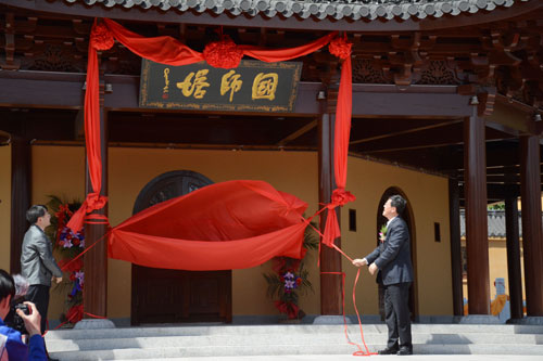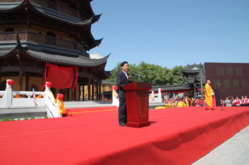 落成庆典仪式由江苏省佛协副会长、秘书长秋爽大和尚主持。江苏省佛协副会长、徐州兴化禅寺方丈、淮安慈云禅寺方丈果光大和尚致欢迎辞。中国佛教协会咨议委员会副主席、江苏省佛教协会名誉会长、常州天宁禅寺松纯大和尚,中国佛协副会长、江苏省佛协会长心澄大和尚,省委统战部副部长、省民委主任、宗教局局长李国华,淮安市人民政府副市长王兴尧先后在庆典仪式上讲话。淮安市市委书记姚晓东、市长惠建林为国师塔落成揭牌。