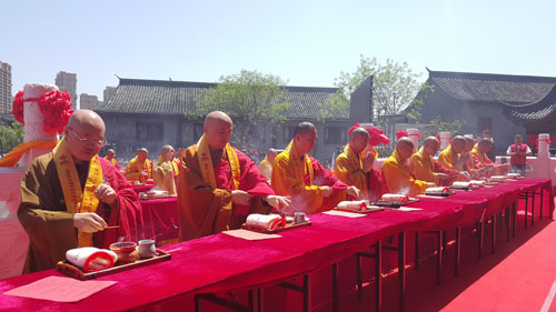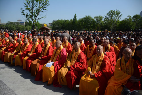 庆典仪式结束以后,上午10时30分,来自省内外的30多位高僧大德在国师塔广场举行开光仪式。整个仪式至始至终,入法如律。