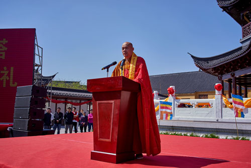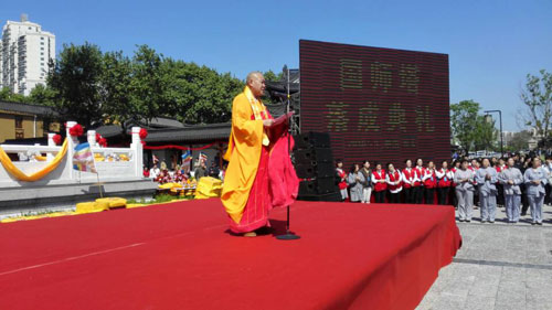阳光普照,万里无云。五月的淮安市里运河畔,杨柳依依,惠风习习。具有浓郁中国特色的慈云禅寺玉林国师塔,在蓝天的映衬下更显古朴巍峨。2016年5月3日上午,国师塔落成庆典在国师塔广场隆重举行。