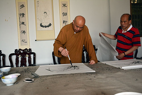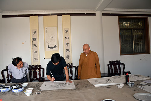 2016年6月29日上午,著名书画家贺承亮先生来徐州兴化禅寺参访,受到江苏省缘源书画院院长、兴化禅寺方丈果光大和尚的热情接待。在江苏省缘源书画院,果光大和尚与贺承亮先生相互切磋书画技艺,贺承亮先生还即兴挥毫泼墨,留下数幅墨宝。