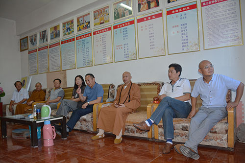 当天下午,在睢宁县委常委、统战部长秦玉锦,统战部副部长、睢宁县民宗局局长葛本浩陪同下,检查团又先后来到古邳镇羊山寺弥陀寺、桃园镇因缘寺实地走访,通过与住持僧觉明法师、理智法师现场交谈,了解到大量的第一手资料。觉明法师代表睢宁县佛教协会筹备组负责人,向检查团作了详细汇报。他介绍说,睢宁县佛教界在上级统一部署下,正在按部就班开展道风建设工作,目前已取得阶段性成果。他认为,社会信仰淡薄、金钱至上的消极影响,拜金主义、享乐主义的冲击,是造成个别僧人戒律松弛、素质下降的主要原因。结合存在问题,他们从严格遵守“僧装、素食、独身”等戒律做起,对标找差,自查自纠。并根据查出的问题,在僧众中大力开展学习有关法规和讲话,学习戒律经典,争做合格僧人活动。果光大和尚对睢宁县开展道风建设工作中取得的成绩给予充分肯定。同时提出几点希望:在现有基础上要形成长效管理机制,通过加强道风建设达到良性循环目的,在查找不足的基础上切实落实整改措施,在取得成绩的同时把工作做得更加深入扎实,要做出亮点,做出品牌,做出让领导、僧团、信徒、群众都能够满意的成绩出来。黄修建副局长在讲话中指出,睢宁县的这两座寺院是从无到有、从小到大发展起来的,县镇领导、寺院法师为此付出极大的心血。下一步要做的就是做好台账,形成资料性的东西。同时还要针对该县存在的问题对症下药,在上级领导的支持下,依靠僧团力量解决一些实际问题。同时希望睢宁佛教界在道风建设上深入扎实地有序开展,力争全县的佛教工作再上一个新的台阶。