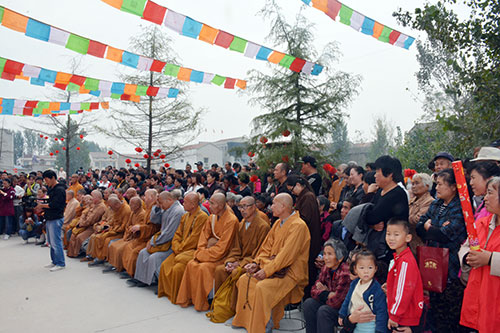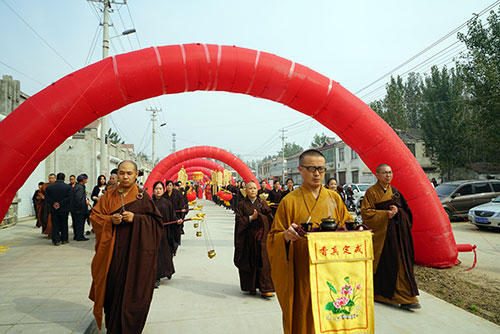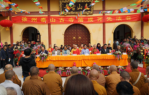 彩旗飘飘,梵音袅袅,法喜充满,佛光普照。2016年10月12日上午10时,人们期盼已久的泰山古寺落成开光庆典,如期在徐州铜山区黄集镇黄东村徐丰路南侧泰山古寺广场隆重举行。徐州市佛教协会会长、云龙山兴化禅寺方丈果光大和尚出席庆典仪式,并在开幕式上向大众开示。上午11时,果光大和尚与市区领导、大德长老一起为泰山古寺落成剪彩,并亲自主持观音圣像开光。市、区部门领导及来自省内外的诸山长老、大德居士、各界朋友、十方善信约千余人参加了这次盛典。