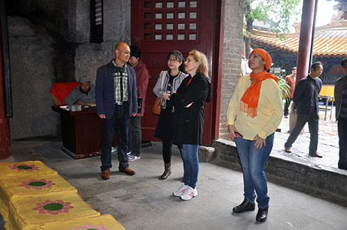 客人从西门进入兴化禅寺。刚到北魏大石佛门前,总领事便和助手一起,非常虔诚地点起香烛,并恭恭敬敬地礼拜大石佛,总领事还用西班牙语祈福祷告,其虔诚恭敬之情令人动容。当徐州市佛协秘书长蒋守丰介绍这座大石佛已有1500多年历史时,总领事通过翻译表示自己的景仰和钦佩。她还通过翻译表示,她非常喜欢中华民族的悠久文化,对中委两国的传统友谊感到欣慰。正因为两国的友好关系,她对中国人民也有着很深的感情。