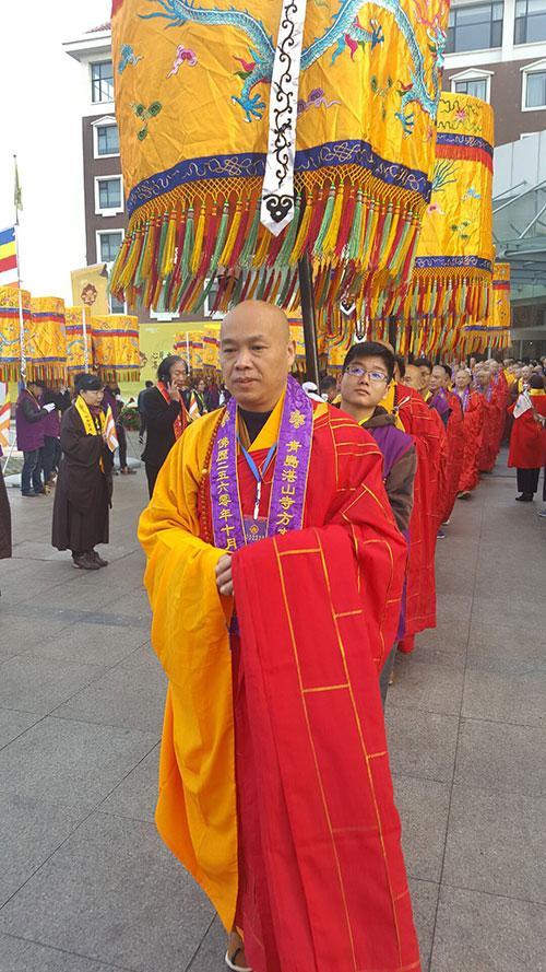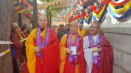 2016年11月5日上午,青岛湛山寺方丈心见大和尚升座庆典在卧佛殿隆重举行,徐州市云龙山兴化禅寺方丈果光大和尚应邀出席了这次盛会。另外,果光大和尚的两幅书法作品入选山东省佛教界书画展,同时在湛山寺上客堂一楼书画展厅展出。