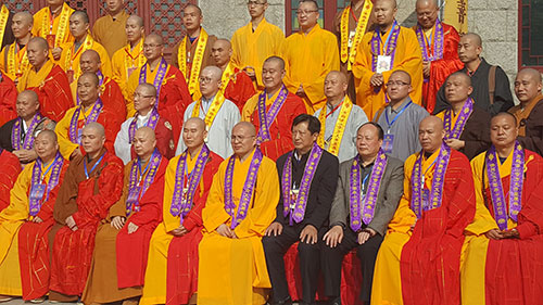 据主持人介绍,出席心见大和尚升座庆典仪式的各级领导、高僧大德、各界嘉宾超过300人。其中有来自韩国、日本、斯里兰卡、印度、尼泊尔等国家的得道高僧,有来自台湾、香港、澳门等地区著名寺院的方丈、住持;还有包括中国佛教协会副会长圣辉大和尚、演觉大和尚、道慈大和尚、纯一大和尚、静波大和尚、正慈大和尚在内的各级佛教界领导,以及全国27个省、市、自治区70多座寺观的120多位法师和居士。庆典期间,出席仪式的各界嘉宾还于11月4日晚上,在青岛电视台广播剧场观看了舞剧《法显》。