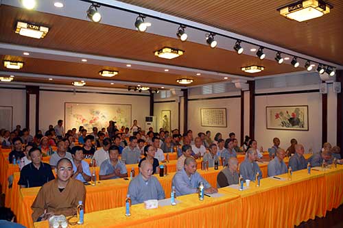 8月24日上午9时,兴化书院报告大厅座无虚席,来自市区和周边县区的僧众,一起聆听法师传授法音。本次来徐巡回讲经的法师分别是悟生法师和演修法师,悟生法师的演讲题目为《普贤菩萨行愿品》,演修法师的演讲题目为《心经》。两位法师精研佛典,造诣深厚,他们通过形象生动、深入浅出的演讲,并不时与到会听众开展互动,整个会场高潮迭起,多次响起热烈的掌声。8月25日上午,两位法师又一起来到徐州市鼓楼区平山寺,向数百位善男信女弘法布道。两场演讲会均由徐州市佛教协会秘书长蒋守丰主持。
