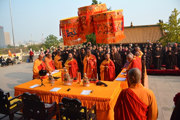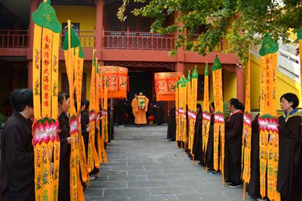 整个法会庄严殊胜,信众拈香虔跪,合掌礼拜,悉心聆听。三师果光大和尚、常信法师、明德法师于天王殿广场,为在家求戒诸善男子、善女子传授如来戒法,“学佛不受戒,还在山门外”,果光大和尚开示道:“皈依是信佛学佛的开始,要以佛菩萨为修学的榜样,珍惜生命,以戒为师,行大愿,发菩提心,利益众生。”在法会中,法师们分别为大众讲授菩萨戒并教授受菩萨戒的规矩、礼仪和佛教常识。宣扬佛法就是自我觉悟的方法,通过观察身心世界,了解苦集灭道四谛,修行戒定慧三学,调伏身心烦恼,发起四宏誓愿,践行大乘菩萨道。