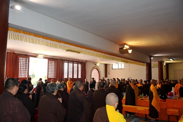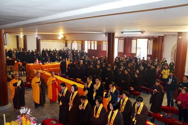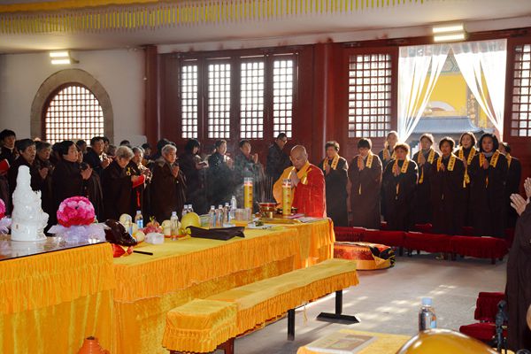 法会期间,果光大和尚带领众居士信众拈香礼佛,唱赞三宝。