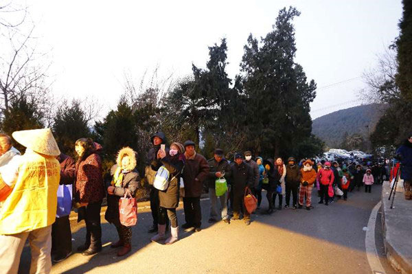 按照惯例兴化寺的施粥时间为凌晨五点半至九点,但是迫不及待的市民们有的半夜就来到云龙山兴化寺山门外排队等候,考虑到今年腊八气温特别寒冷,兴化寺于凌晨提前开始施粥。凌晨六点左右,领粥的队伍甚至排到了距兴化寺几百米远的观景台。