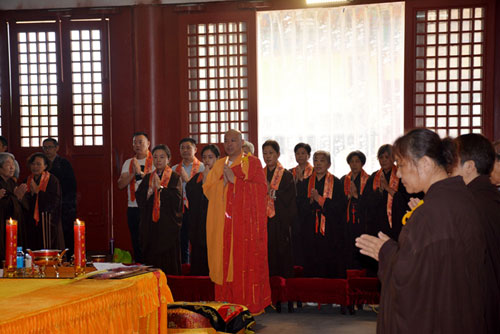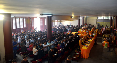 三日内,徐州市区及苏鲁豫皖接壤地区的四众弟子每天都有近300人,在兴化寺卧佛殿,一起恭诵《地藏经》和《盂兰盆经》。