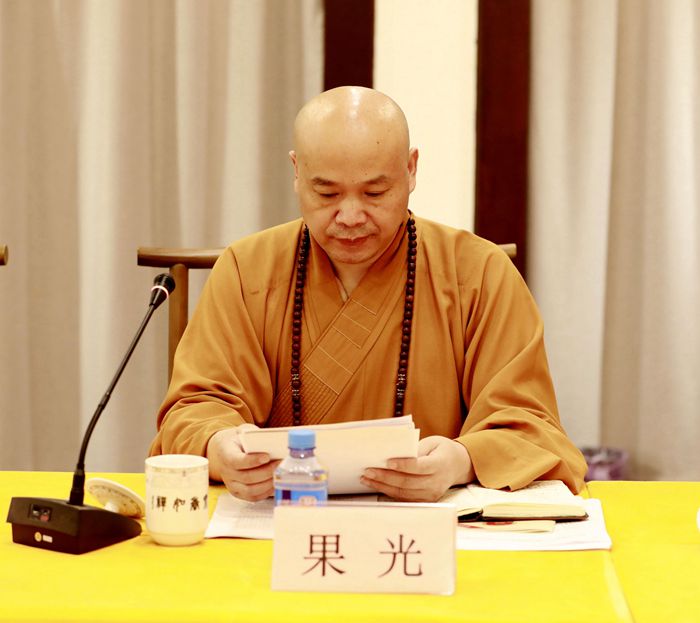 会长果光大和尚传达了中佛协、省佛协会议精神,号召大家要进一步加强学习党的十九大精神,以习近平新时代中国特色社会主义思想为指导,进一步提高全市佛教界的法律意识和法律观念,强化教风建设,科学管理寺院,去佛教商业化,自觉抵制各种诱惑,进一步提高全市僧才的综合素质,弘扬社会主义中国传统文化;树立全局观念,立足当下,放眼未来,努力发挥佛教作用,为开创徐州光明的未来勇猛精进。