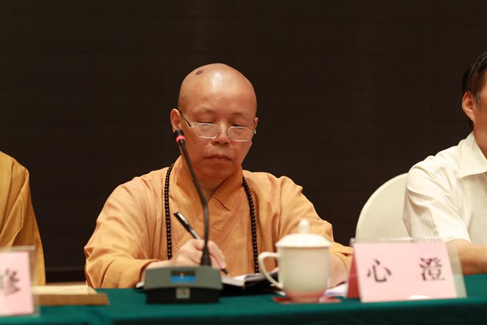 中国佛教协会副会长、江苏省佛教协会会长心澄大和尚对本次大会的召开表示热烈的祝贺,他提出要始终坚持宗教中国化方向,自觉做到政治上认同、文化上融合、社会上适应;希望大家直面存在问题,以“去商业化”为重点,持续推进教风建设;积极助推和谐社会建设,踊跃参与扶贫济困、助残、救灾、义诊等社会公益慈善,希望新一届佛协领导班子更加锐意进取,奋发有为,团结好广大信众,继承佛教优良传统,为建设“强富美高”新江苏,为实现中华民族伟大复兴中国梦做出新的积极贡献。