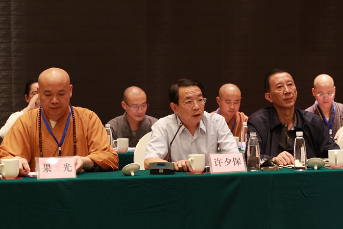 淮安市民族宗教事务局许夕保局长讲话,他充分肯定了第三届理事会八年来的成绩并对大家提出了殷切希望,他希望新一届佛教协会领导班子要高举爱国爱教旗帜,不断适应时代对佛教协会新的要求;切实加强自身建设,不断提高佛教界整体素质,树立淮安佛教新形象;带领全体僧众,积极开展“和谐寺观教堂”和星级宗教场所活动,为构建和谐宗教、和谐淮安而努力奋斗!