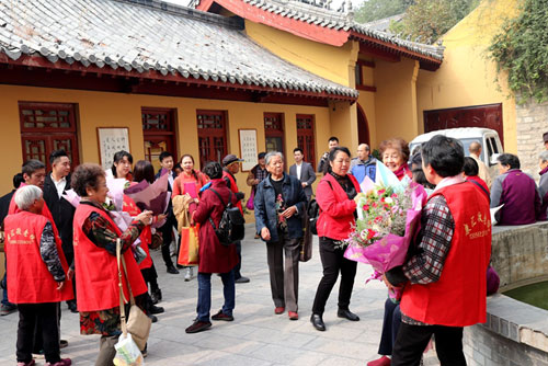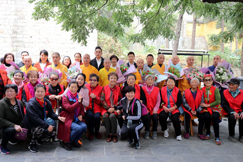 金菊飘香,归雁成行;岁岁重阳,今又重阳。2018年10月17日,农历九月初九,徐州兴化寺邀请敬老院和社区的100余位老人来兴化寺登高祈福,共品长寿面。