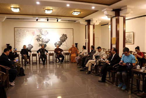 客人们一行在兴化书院观看了果光大和尚的部分书画作品,大家一起切磋书画艺术,几位画家还现场挥毫泼墨,笔走龙蛇,酣畅淋漓。之后举行了果光法师书画作品座谈会,大家对果光法师的书画作品给予高度评价。
