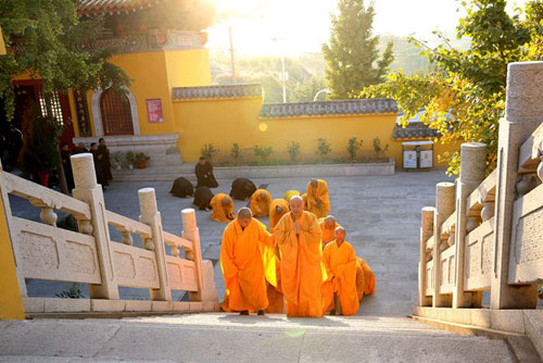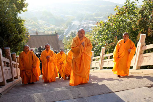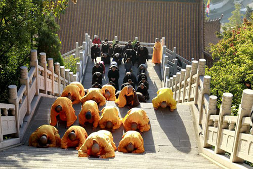 朝山拜佛功德无量,大众法喜无量。果光大和尚开示大众:通过朝山拜佛,降伏贡高我慢之心,希望大家能够认识自心,调伏自心,解放自心,让自己的心能够享受安详宁静。逐步升华自己的人格、净化自己的心灵、完善自己的人生,回归自己的佛性。进一步体悟佛的教诲,关注社会,关心他人,致力行善,利益人群!