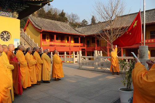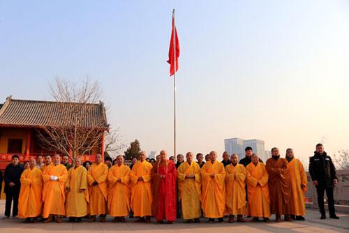 “爱国爱教”是我国佛教界自古以来的优良传统。值此2019年元旦,举行唱国歌、升国旗仪式,在徐州市佛教协会会长、兴化寺方丈果光大和尚带领下,佛门四众弟子祝愿国家繁荣富强、人民安居乐业。