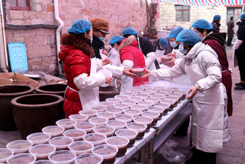 暖暖柔柔的粥香弥漫寺院