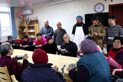 兴化寺各慰问小组分别到景区消防大队、云龙山园林环卫处、白云山颐养院和徐州市儿童社会福利院,给他们送去了热气腾腾的腊八粥,传递温暖和祝福。颐养院的老人们都说兴化寺的腊八粥又香又甜,喝后心里暖暖的。