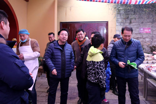 徐州市民宗局局长王晓松清晨就带领民宗局的工作人员来到兴化寺现场指导,首先向劳作一夜的僧侣和义工们表示亲切的慰问和感谢。当王局长看到络绎不绝的市民在排队领粥时,对兴化寺井然有序的腊八活动,给予了高度评价,他高兴地说:腊八节是传的文化节日,应该大力传承和发扬民俗文化,希望越办越好,明年不见不散!