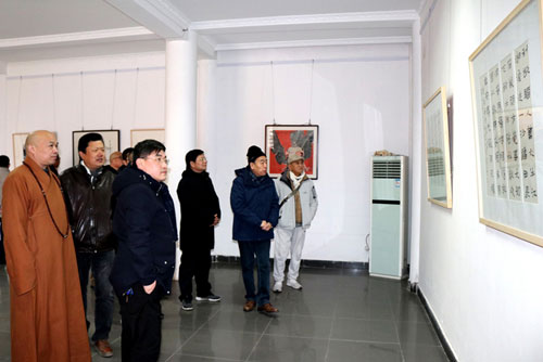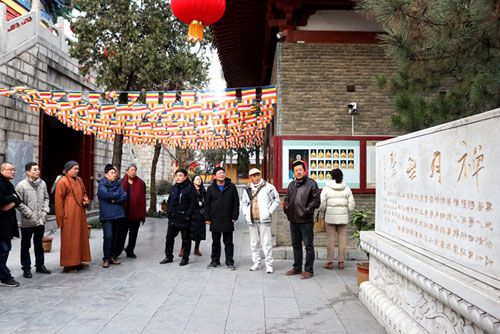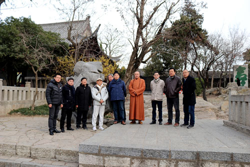 2019年1月26日下午来徐参加庆祝中华人民共和国建国70周年、淮海战役胜利70周年“淮海之春—苏鲁两省中国画名家作品邀请展”开幕式的山东艺术学院教授、研究生导师岳海波先生,山东艺术学院原院长、教授、研究生导师、中国美术家协会理事、山东省文联副主席、山东省美术家协会名誉主席、中国画学会副会长张志民先生,中国美术家协会理事、中国水墨画院副院长、山东省美术家协会顾问、山东省政协委员曾先国先生,济南市美术家协会副主席、山东艺术家(书画专业)学术委员会学术委员郭英培先生,山东画院山水画创作室主任、国家一级美术师贾荣志先生,中国美术家协会会员,山东画院青年画院副院长,山东美协当代水墨艺术委员会副主任孙春龙先生等山东、江苏画家一行20余人慕名来到云龙山兴化寺参访。