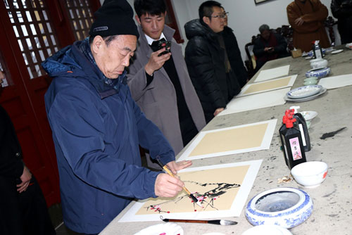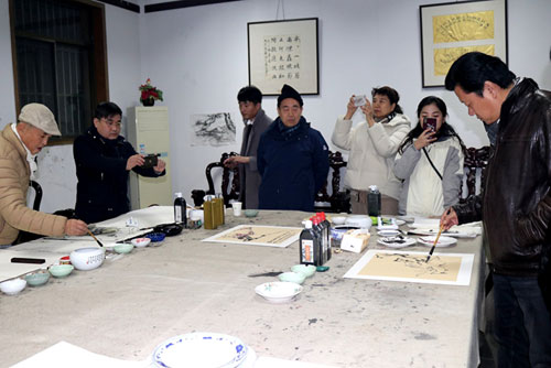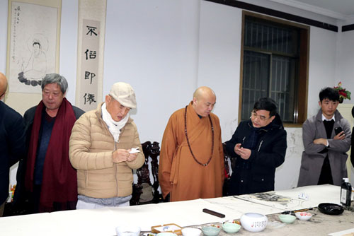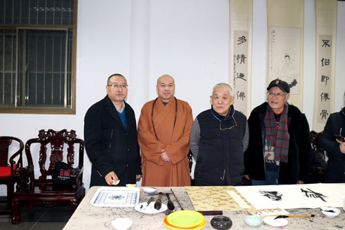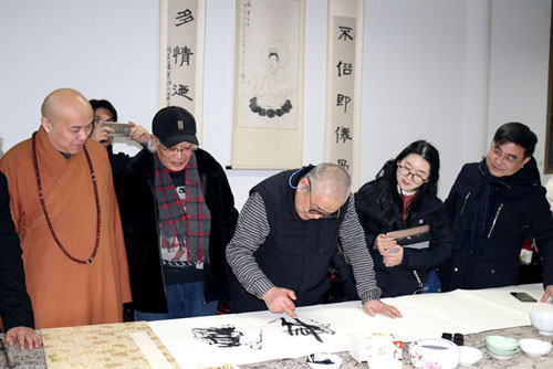 时令虽在严冬,书画家们却热情高涨,兴致勃勃地在兴化禅寺内的书画创作室以笔会友,喜迎新春。