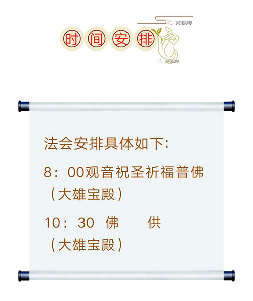 法会敬设红牌,值此胜缘,当欢喜踊跃,欣喜参加,积聚福慧资粮;增长智慧,启发慈悲利他之心;以此功德,祈愿世界和平,国泰民安,风调雨顺,消灾免难;回向法界一切众生,业障消除,福慧圆满,早成佛道。