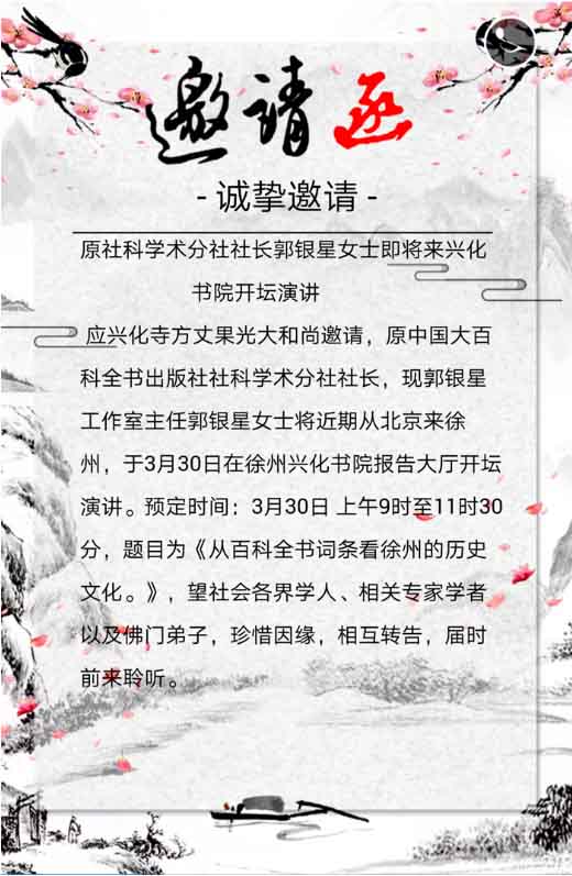 徐州市兴化书院将邀请郭银星女士开坛演讲