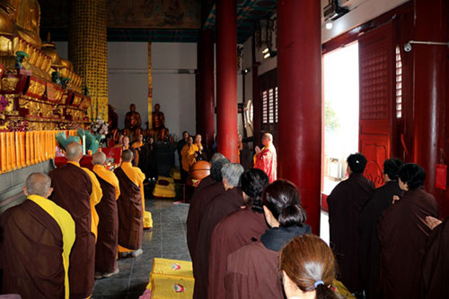 下午两点半,四众弟子又在大和尚率领下聚集在大雄宝殿,举行肃穆庄严而又隆重的往生普佛超度仪式,同时也为近期突发事件遭遇不测的逝者痛悼。祈愿三宝慈光加被,亡者蒙佛接引、离苦得乐、早登莲邦!