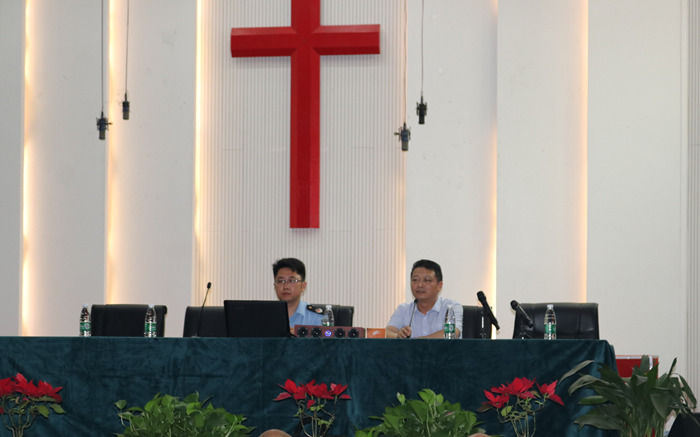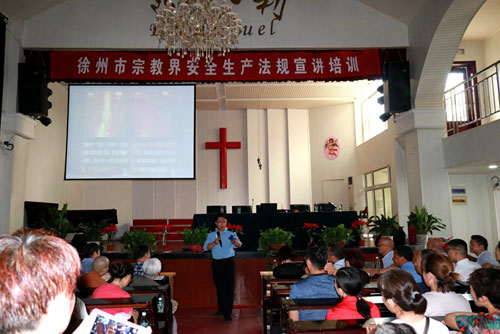 2019年6月14日下午2时30分,徐州市民族宗教事务局组织的宗教领域消防安全暨应急演练培训在复兴北路基督教堂举行。黄修建副局长出席了培训活动,宗教一处皮旭宇处长主持召开,特邀请安居防火的魏参谋担任主讲。