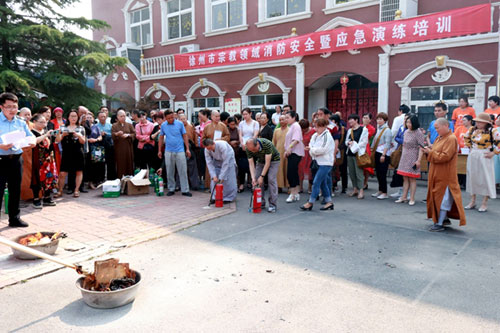 来自主城区民宗系统的领导,市各宗教团体负责人,市区宗教活动场所负责人和信教群众代表100余人参加了培训演练。徐州市兴化寺监院常信法师带队参加了活动。