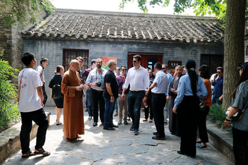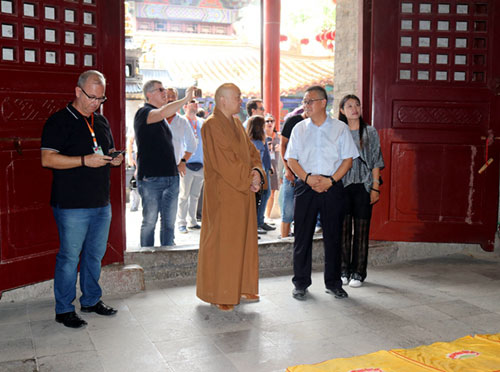 尽管存在着语言交流上的不同,但巴西友人对佛教和中国的寺庙还是非常的感兴趣,果光大和尚通过随队翻译,陪同大家先后参观了明清禅院、禅月无声刻碑、唐宋摩崖石刻、北魏大石佛、大雄宝殿和洞天小庐等名胜古迹和景点,并讲解了兴化寺的历史典故。