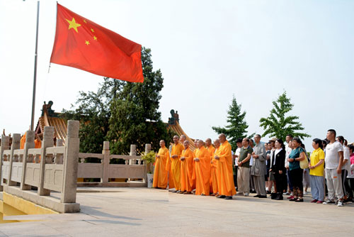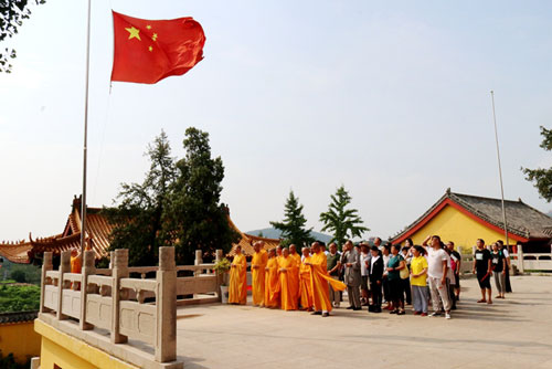 徐州市云龙山兴化寺八一建军节升国旗 激发爱国主义情怀