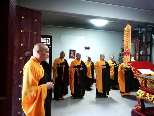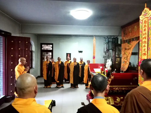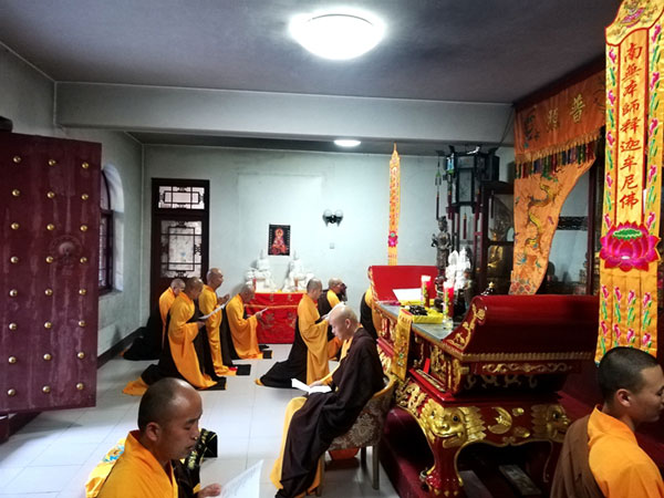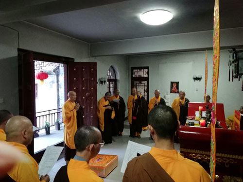 2019年8月15日(己亥农历七月十五)佛欢喜日,也称僧自恣日,按照祖制清规,下午四点半,徐州市云龙山兴化寺结夏僧众搭衣齐聚法堂,举行己亥安居圆满如律解夏仪式。