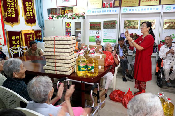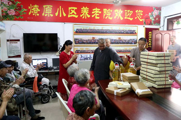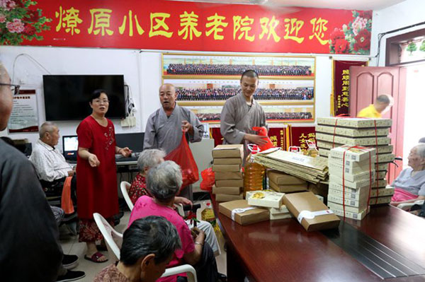 在传统节日中秋佳节来临之际,徐州市佛教协会会长、兴化寺方丈果光大和尚心系彭城养老服务中心的老人们,9月3日下午,他安排兴化寺瑞群、应开、体愿三位法师及居士代表来到敬老院看望老人,送去佛教界的关怀,同时还慰问了养老院所在燎原小区内的十户特困家庭,并请大家品尝寺院的素月饼。