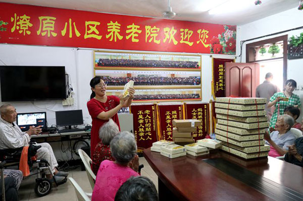 “全国助残先进个人”徐州市云龙区彭城街道“残疾人之家”负责人周长芝院长代表老人们感恩果光大和尚,她说请大和尚放心,养老院所有人都会品尝到美味的兴化寺月饼,感受到来自佛门温暖的爱!