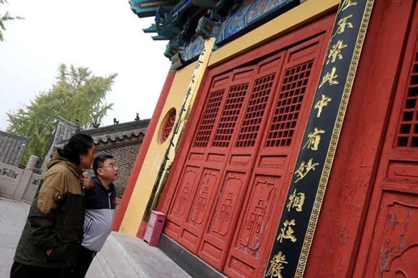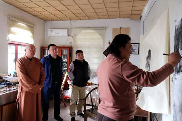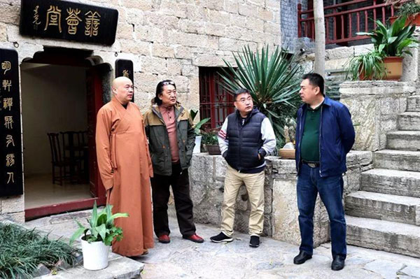2019年11月17日下午,山东省泰安市书法家协会主席仇东先生在徐州莫高文化传播有限公司董事长金连平、画家李培的陪同下,慕名来徐州兴化禅寺,专程拜访徐州市佛教协会会长、兴化禅寺方丈果光大和尚。