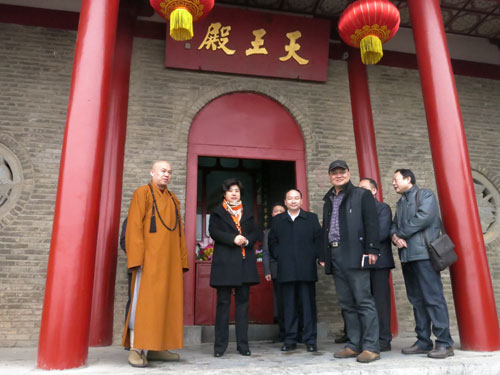 李燕副市长一行首先检查了兴化寺各类安全设施,对节日期间作为佛教寺院应注意把握的安全重点作了具体的要求,并代表市政府向全市佛教教职人员和佛教信众予以亲切慰问,祝愿大家春节愉快,吉祥如意。随后,李燕副市长、周广春副秘书长等到天王殿、大雄宝殿、唐宋摩崖石刻大殿、大石佛殿等处进行了检查参观。徐州市佛教协会秘书长蒋守丰向李燕副市长一行详细介绍了唐宋摩崖石刻的发现发掘经过,并介绍了北魏大石佛的雕刻年代和悠久历史。最后,李燕副市长、周广春副秘书长等还非常高兴地在山门前与大家合影留念。