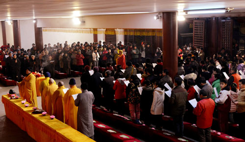 2015年3月5日是乙未年正月十五上元佳节,当天晚上,徐州兴化禅寺在卧佛殿隆重举行羊年元宵节传灯祈福法会。400多名法师、居士和市民参加了法会。