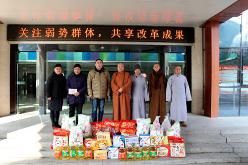 彭城飞雪带春风,兴化佛光普众生。2019年2月1日下午,徐州市云龙山兴化寺方丈果光大和尚带领僧俗两序大众到徐州市儿童社会福利院慰问孩子,给社会福利院可爱的孩子们送去了兴化禅寺全体常住法师和义工的新春祝福和爱心牵挂,同时也送去了价值3000余元的食品、米、面、油等物。